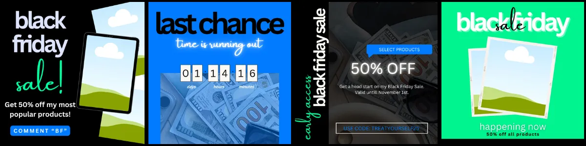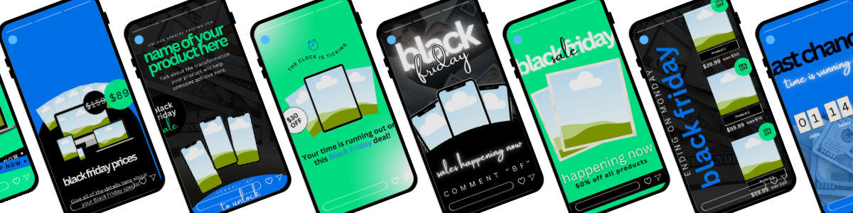 It's simple! These story and post templates will open right up into Canva. You can edit them to your liking from there. I recommend adding your own colors, images of your products, etc. Then, use those to promote your Black Friday sales!