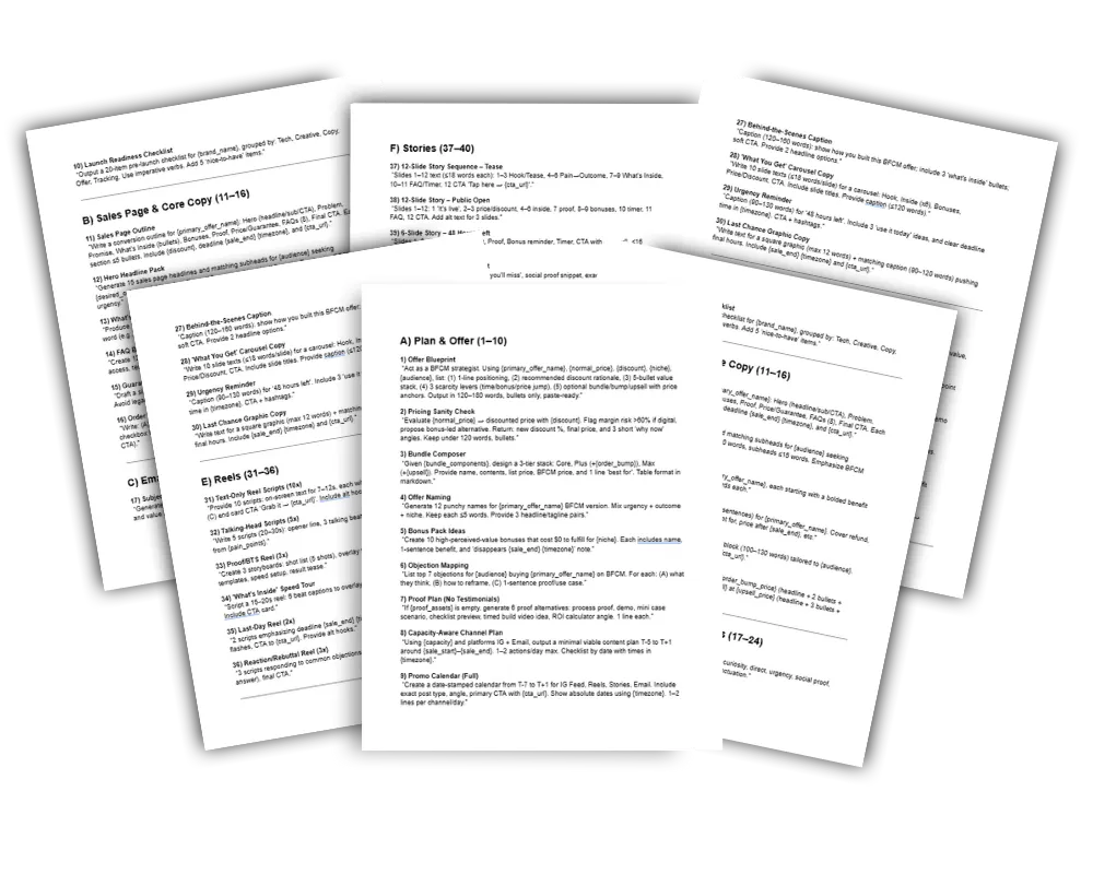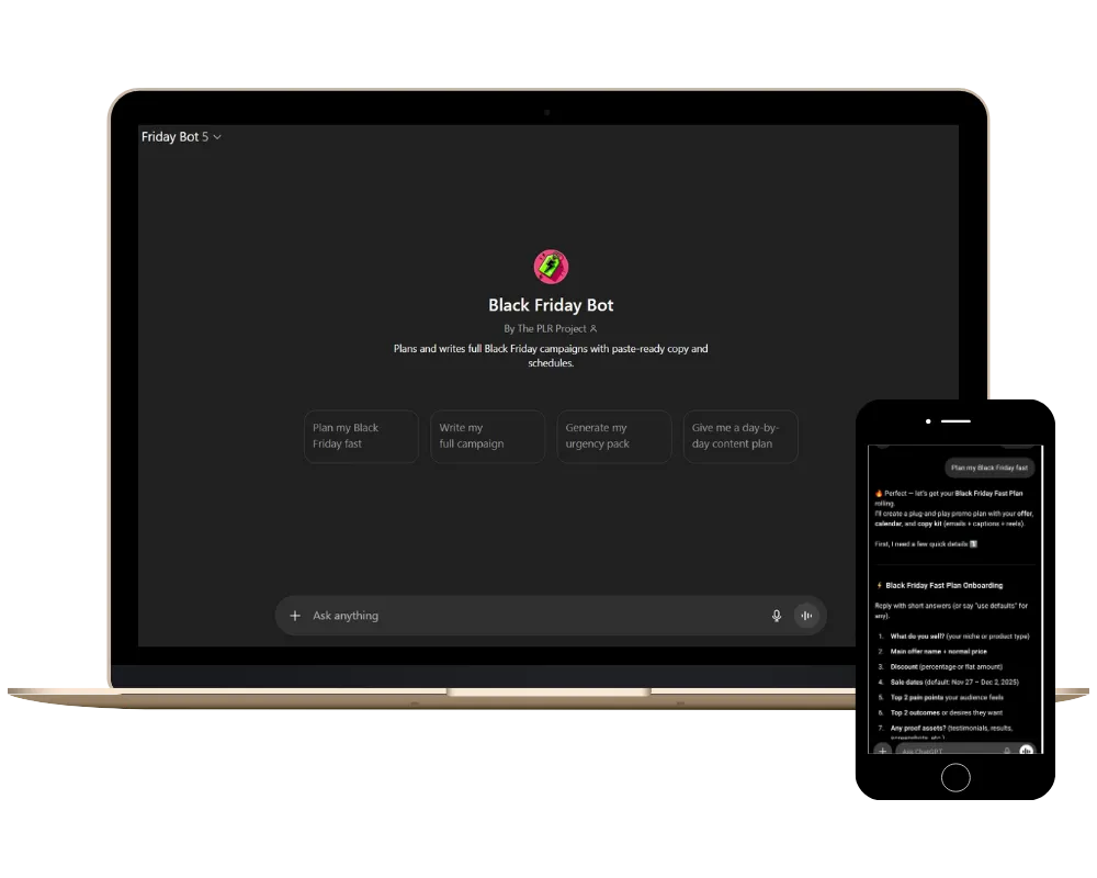 A 50-pack of ready-to-use ChatGPT prompts designed to plug right into your Black Friday Bot.